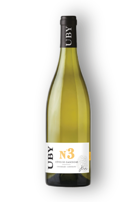 Cuvée phare des vins de Côtes de Gascogne, UBY N°3 est un vin frais et fruité aimé de tous. Vif et aromatique, il ravira les novices comme les amateurs de vin blanc sec, de l’apéritif au dessert.